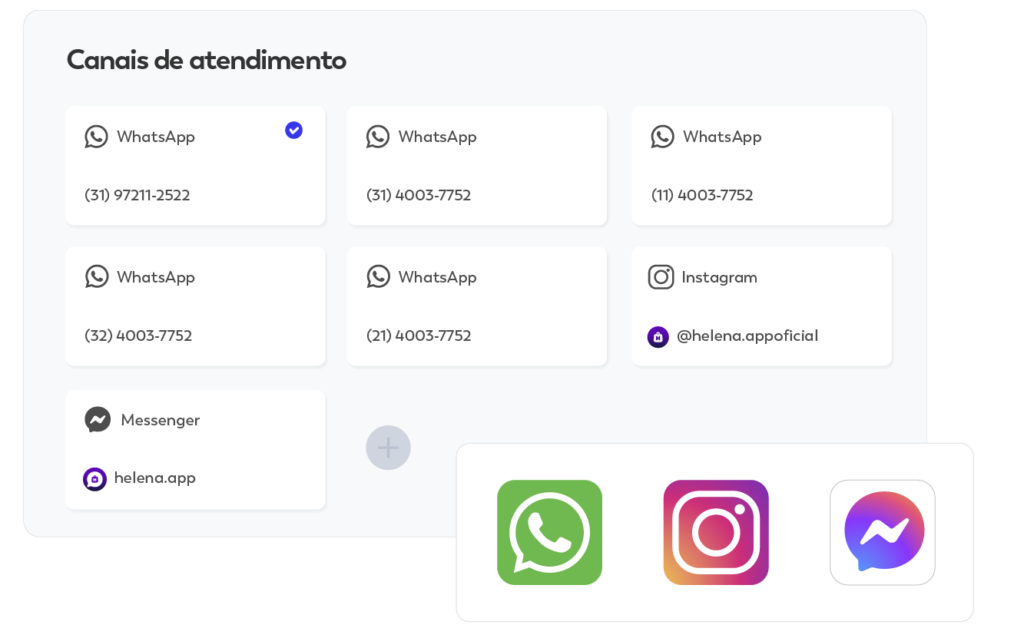 WhatsApp, Instagram, Messenger e outros canais organizados em uma única central, com controle total das conversas e da operação.
