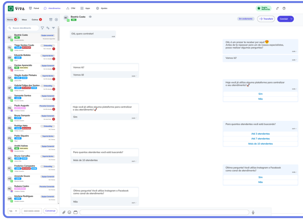 Com a Central Viva, seu chatbot registra, organiza e qualifica leads automaticamente, acelerando o funil e gerando conversões previsíveis.